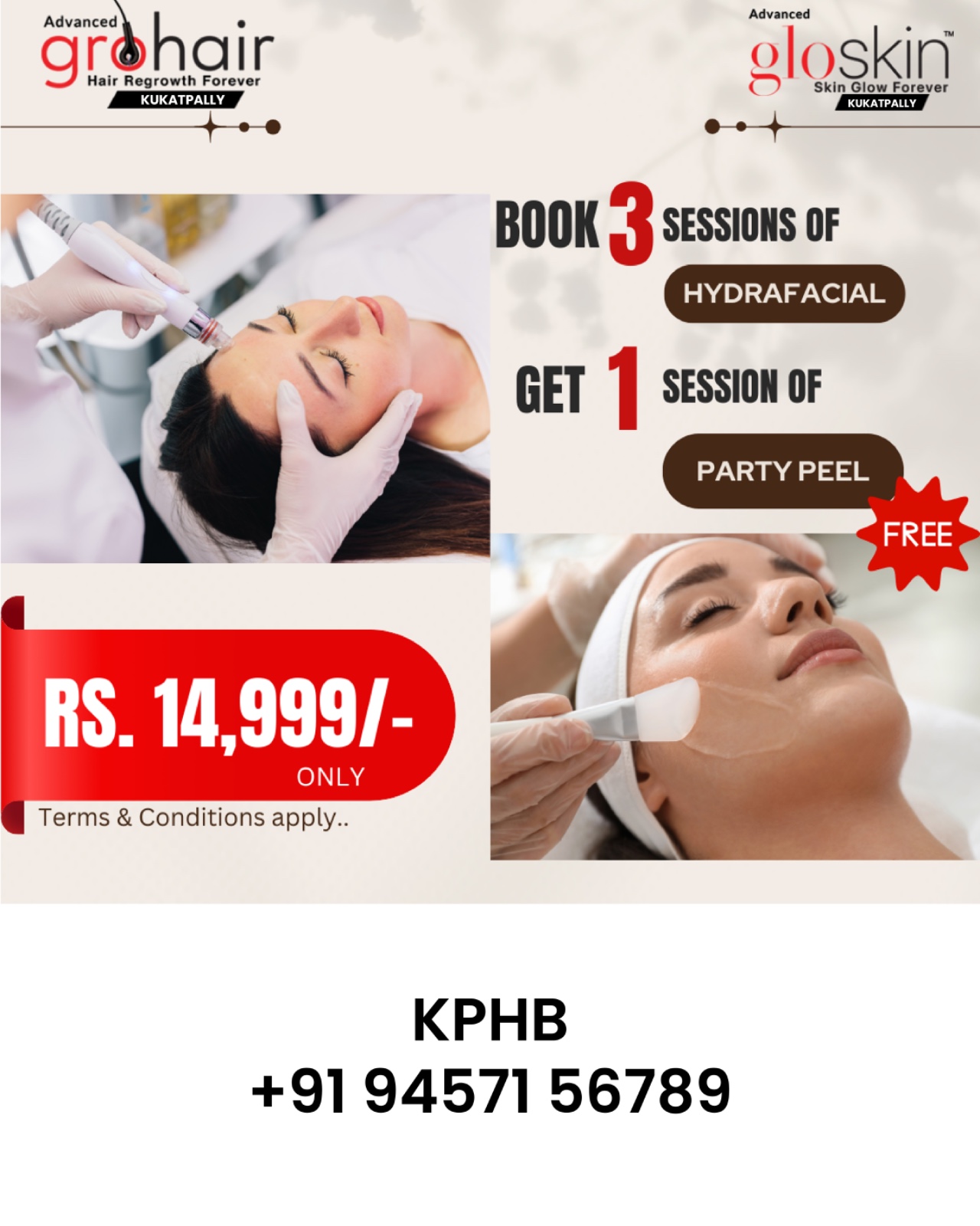 I opted for a hydrating facial at Advanced GroHair & GloSkin Clinic and loved it. The esthetician used quality products and gentle techniques. My skin feels soft, plump, and rejuvenated. Plus, the reception was warm, and timing was punctual. If you’re in Kukatpally and need skin TLC, this place is exceptional.